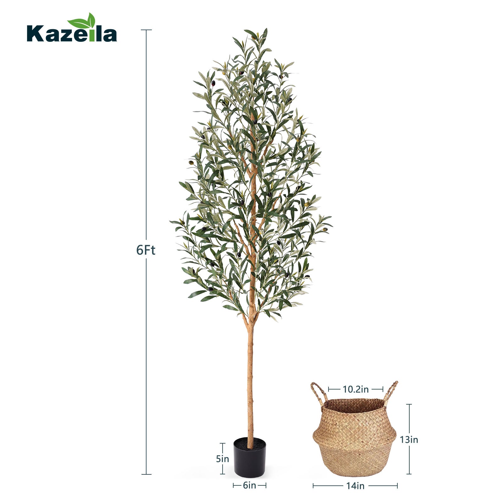 - Real Wood Trunk & Lifelike Silk Leaves for a Natural Look:Designed with a real wood trunk and lush silk leaves, this faux olive tree boasts a full-bodied, natural appearance. The lifelike olive fruits enhance its authenticity, making it a standout floor plant that adds warmth and elegance